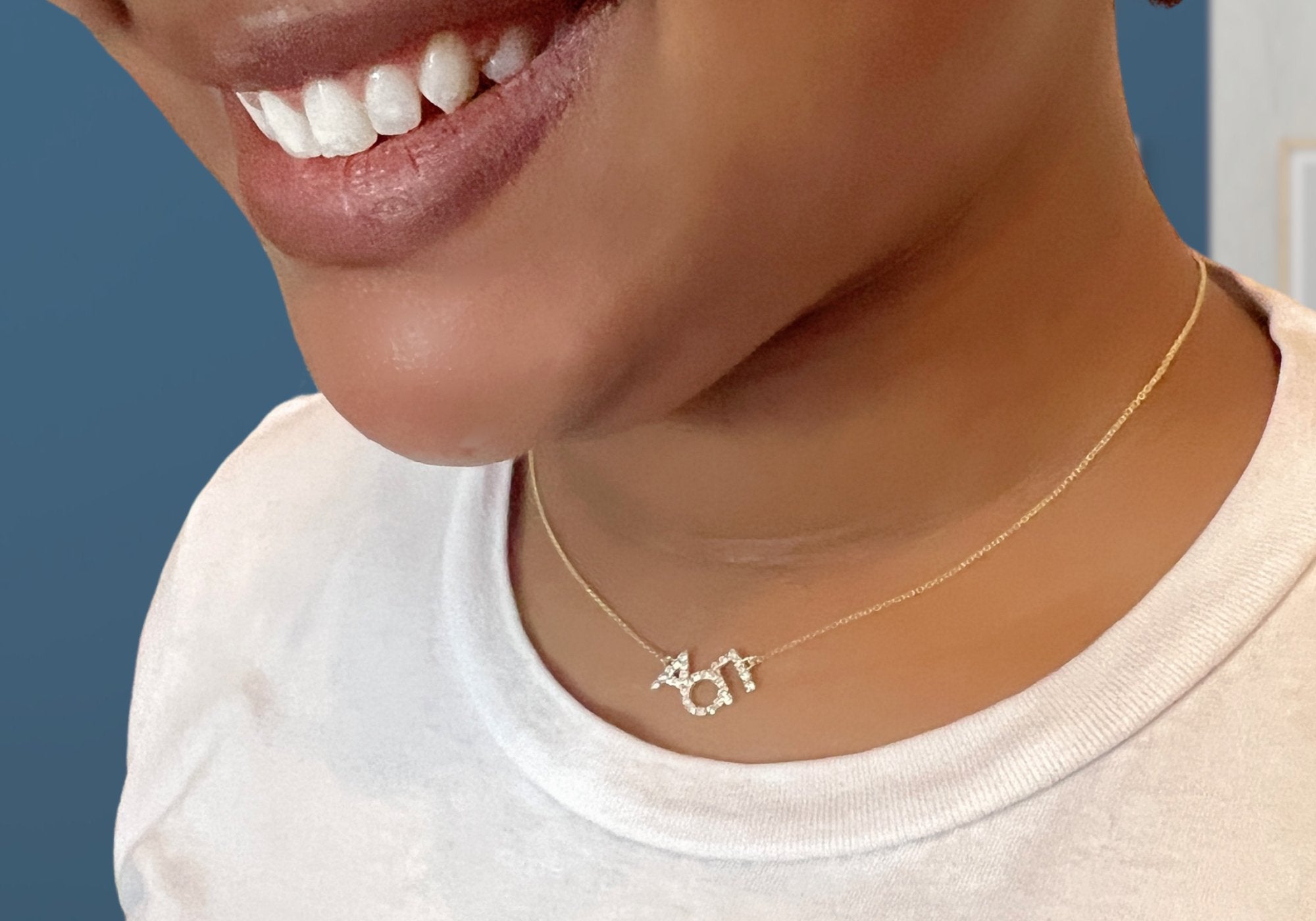 The AOII Luxe Collection was created to honor Alpha Omicron Pi with fine jewelry as meaningful as your sisterhood. This exclusive trio includes three solid 14k gold necklaces: one set with natural diamonds, one in vibrant rubies, and one accented with a single ruby in the apex of the “A”—a minimalist nod to the AOII badge.